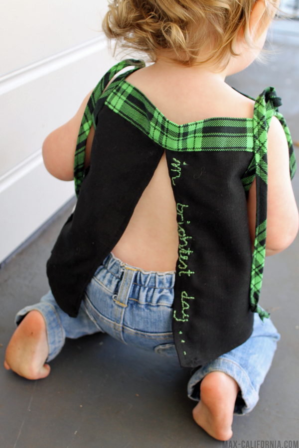 Such a cute little top! You would think the green and black would look dark on a little girl but it looks really good, I think the ties and open back help. I have never paper pieced or seen a tutorial... I should look it up!